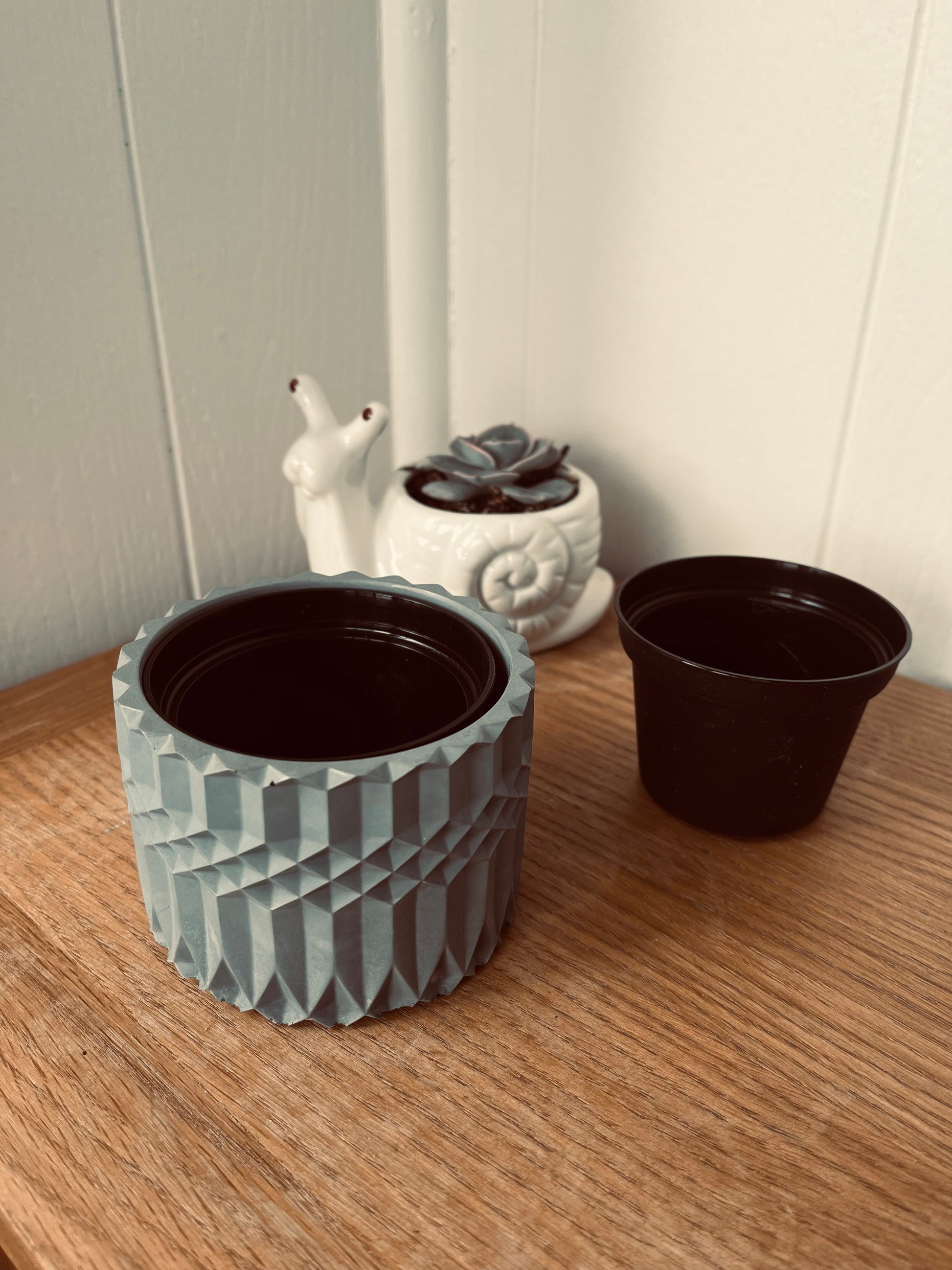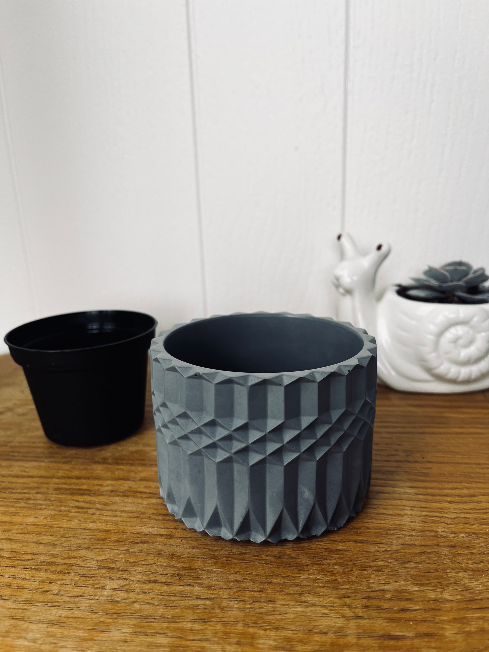 Handmade Vintage-Style Container | Geometric Cement Holder | Classic Concrete Planter